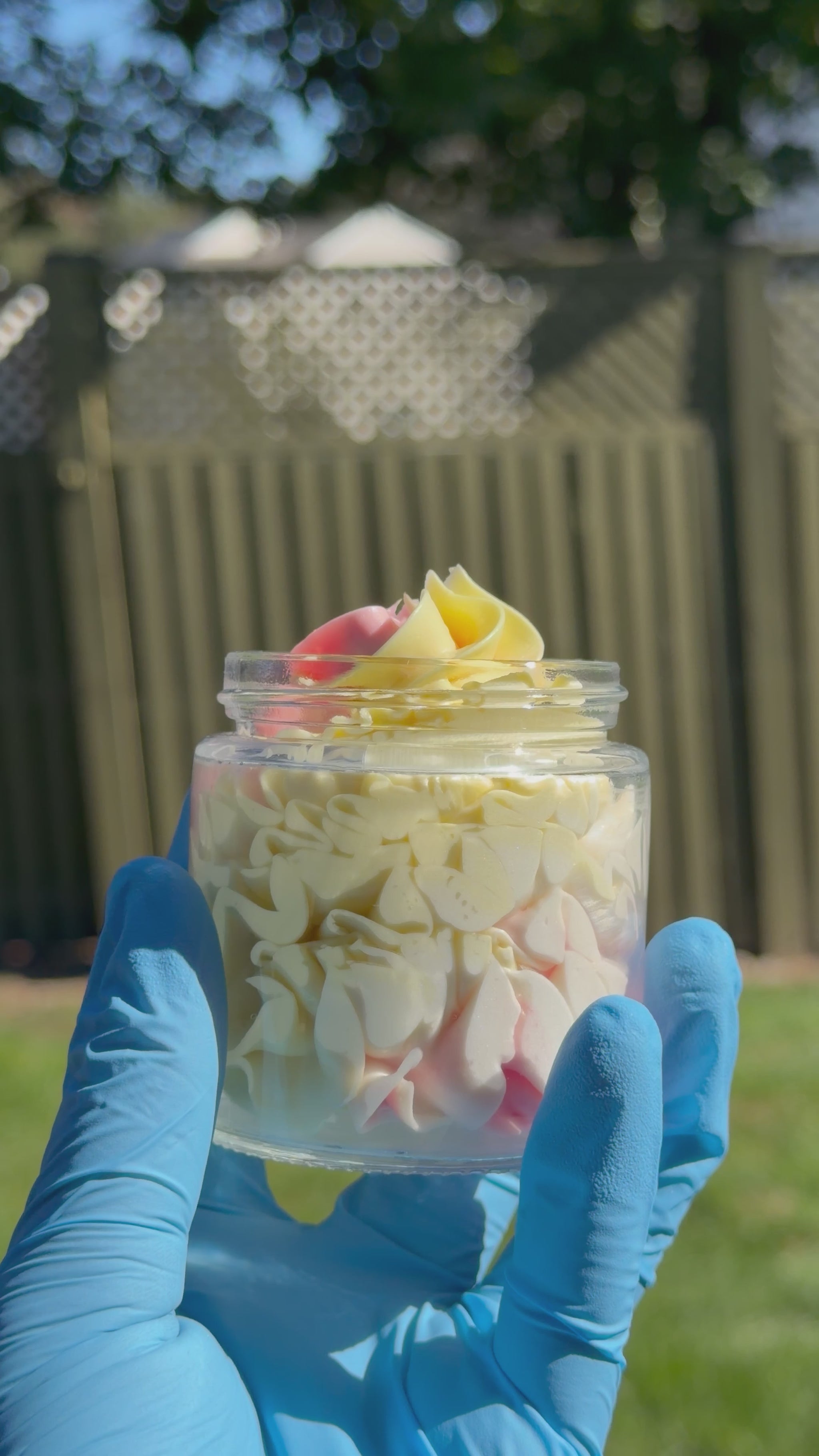 Slather your skin in this sweet, juicy body butter! Get the feel of whipped shea butter without the sticky residue. Smelling like a summertime treat, this raspberry lemonade scent is both refreshing and invigorating! So pucker up, and enjoy this zippy refreshment for your skin! 🍹